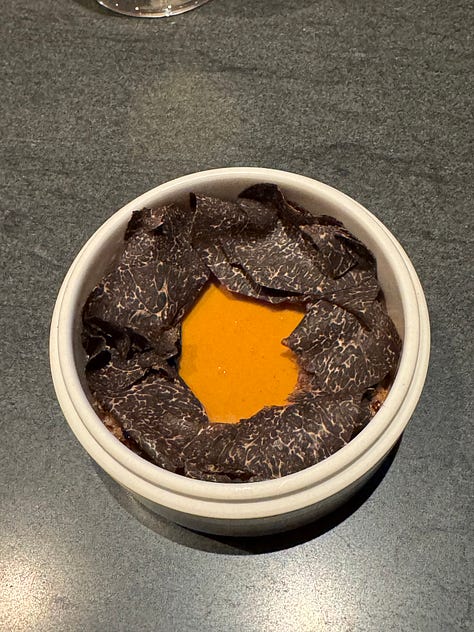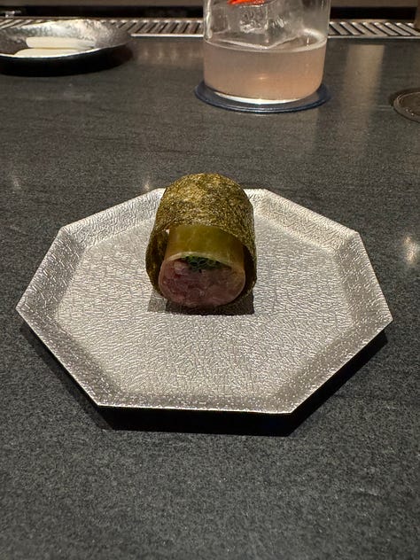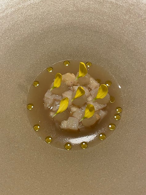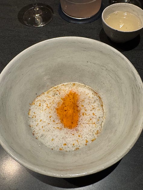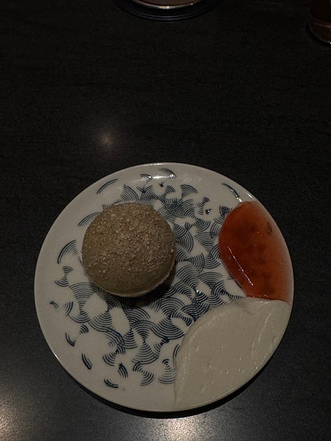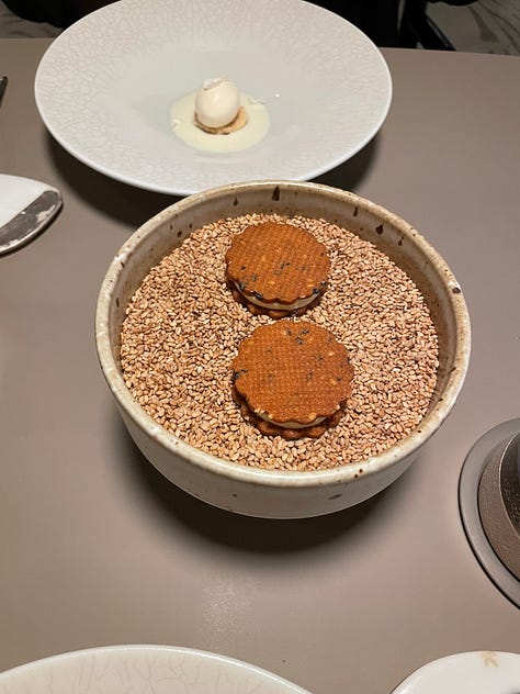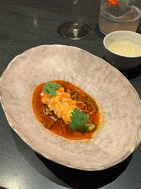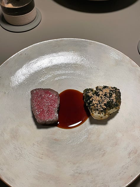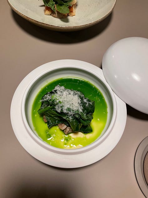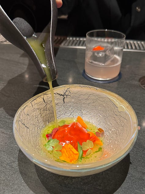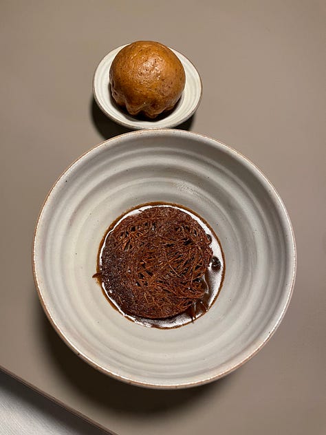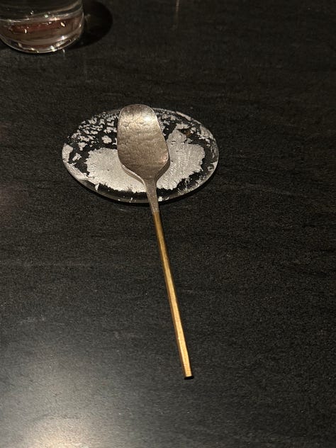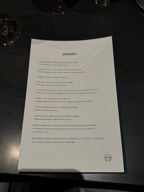 I think that’s why I gravitate towards Korean fine dining, in particular. The attention to detail that permeates Korean culture really shines within the context of fine dining, so it makes sense that there are so many Korean restaurants of this nature in New York alone. These restaurants have a clear sense of heritage and storytelling that stuffier fine dining establishments often lack, while employing a level of innovation that is central to the culture and ethos of Seoul. Ethan has dined at Eleven Madison Park. I have not, but I am much less enchanted by a primarily plant-based American tasting menu served in a dining room that appears to be strangely corporate. Ethan and his family loved their meal there, but The Infatuation recently rated it a scathing 6.5/10, claiming that the restaurant is clearly struggling with an identity crisis… Not that The Infatuation is the end all be all, and they might just be offering a hot take for the sake of being controversial, but one thing Soigné and Atomix do not struggle with is identity.